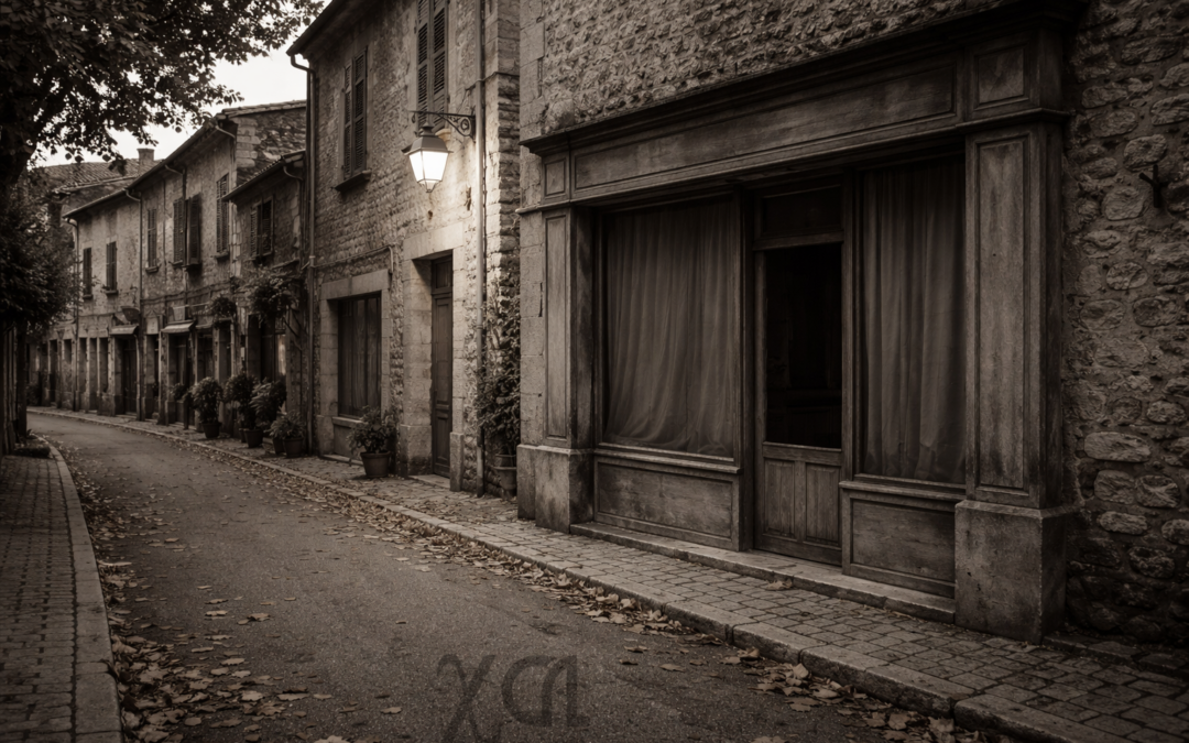 Dans les villages, la tombée du soir n’est jamais tout à fait neutre. Elle révèle ce qui tient encore, et ce qui vacille. À l’heure où les réverbères s’allument, certaines vitrines restent dans l’ombre. Le rideau est tiré, la poussière commence son lent travail, et l’on comprend, sans qu’on ait besoin de chiffres, qu’un peu de vie s’est retirée de la rue.